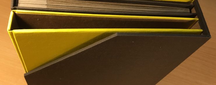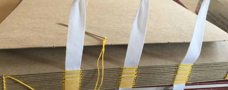 Enquadernació tapa plana, cosida amb cintes i telar, per l'artista Olga Serral.