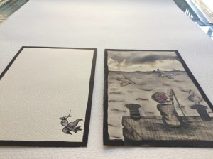 Para la obra de teatro de títeres «Adiós Bienvenida» Mina realizó una serie de dibujos con el contenido de la obra, todos estos dibujos queria recopilarlos en un libro. Hablamos un rato y cuando encontré la emoción que quería transmitir, empecé a crear!.