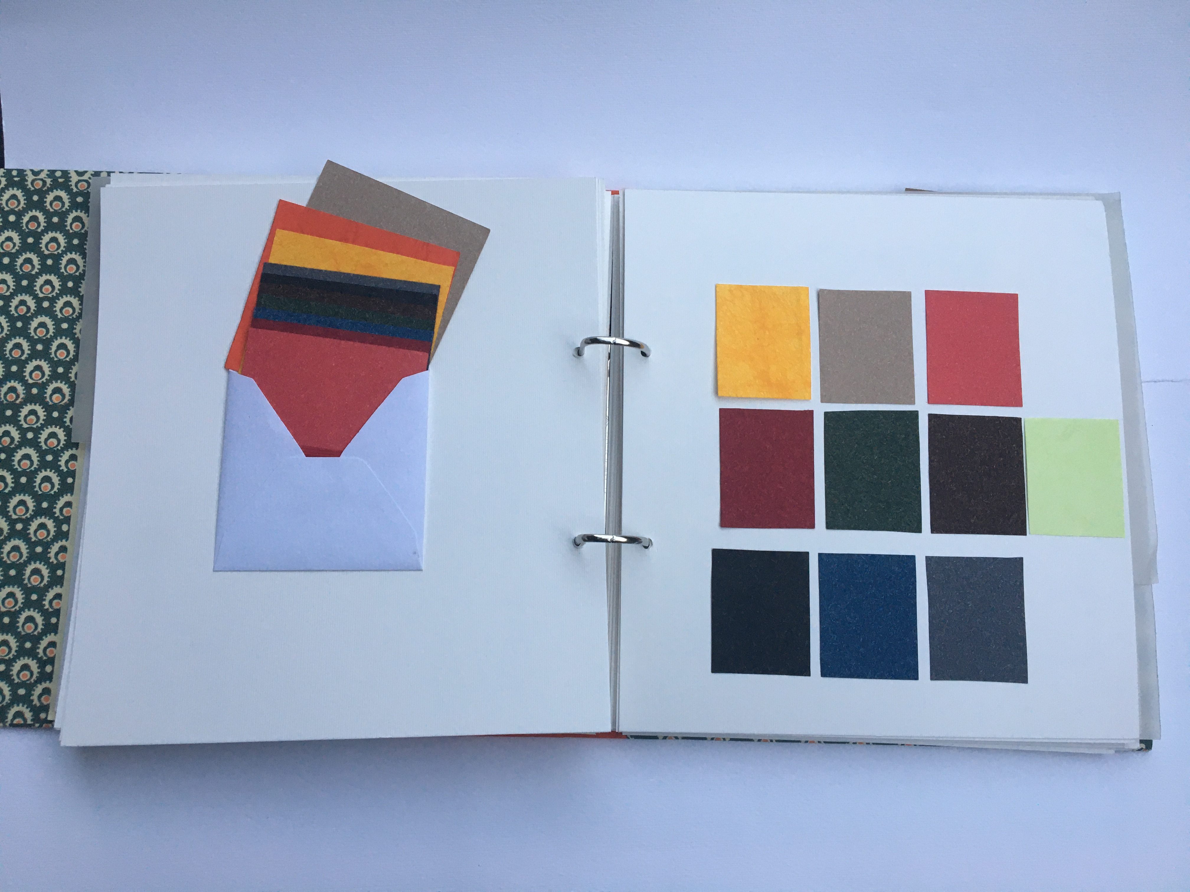 Els materials estan separats mitjançant uns separadors amb paper vegetal. Cada grup de materials conté un sobre on posarem petites mostres per poder anar a la botiga a comprar.