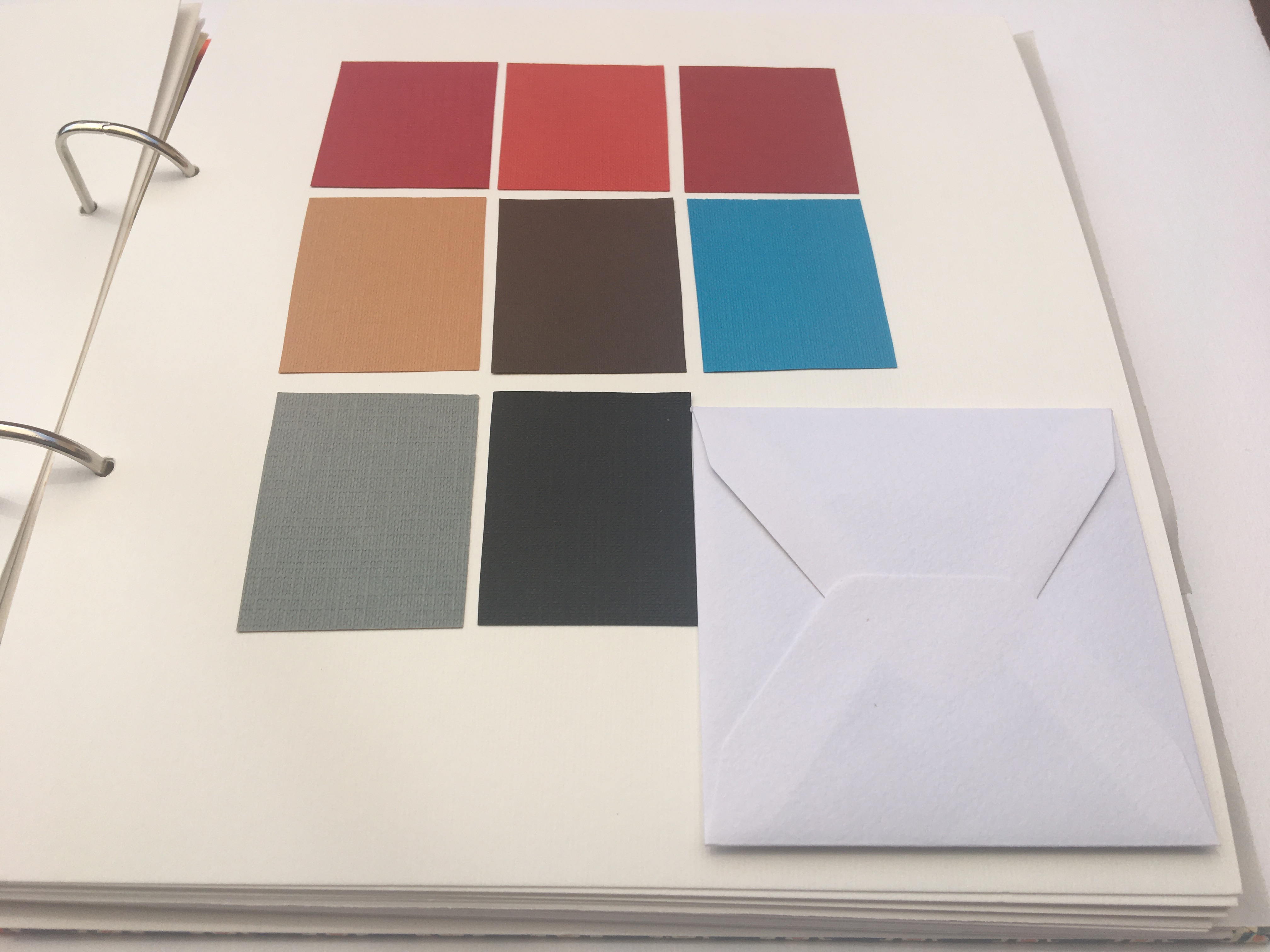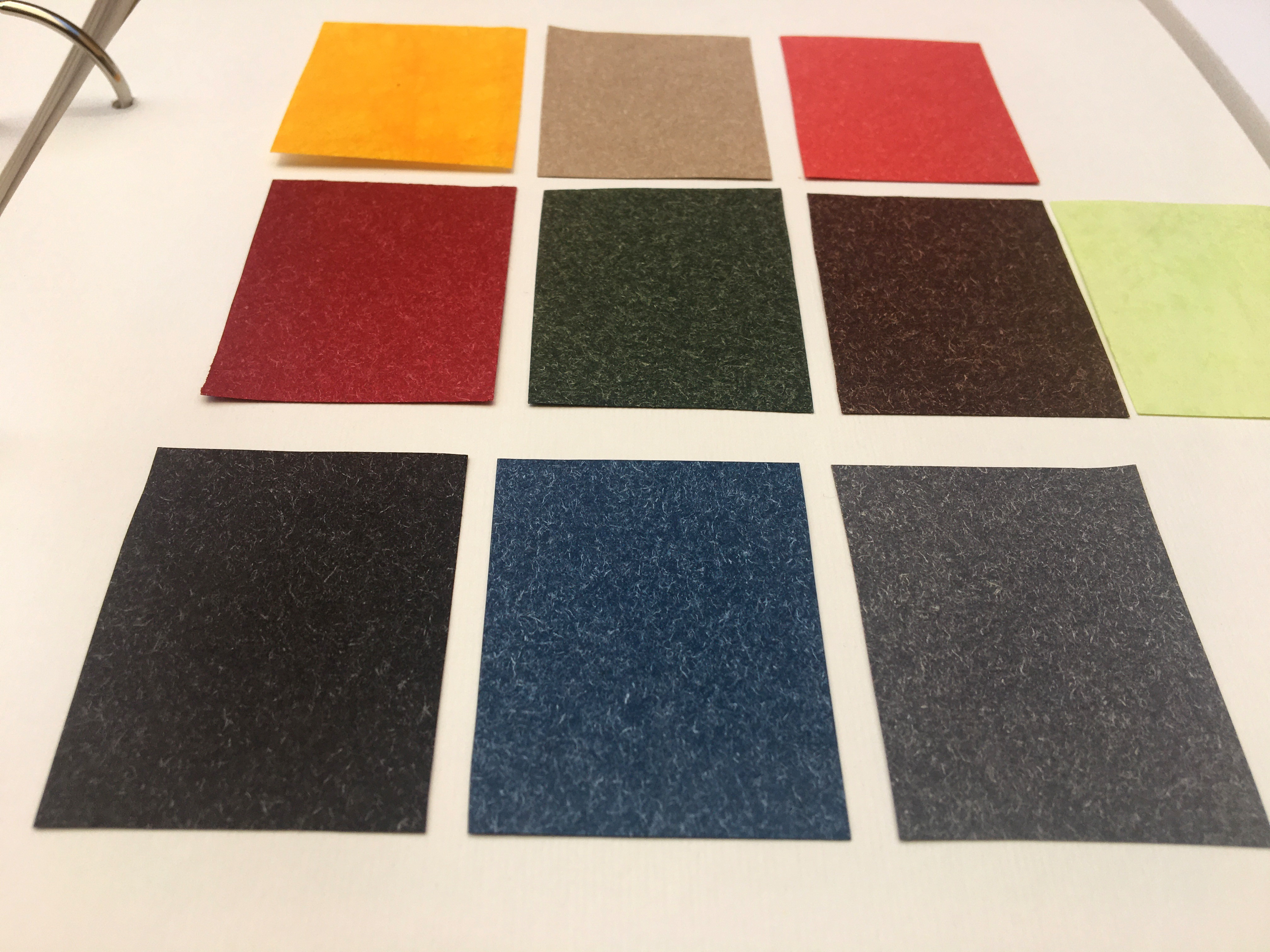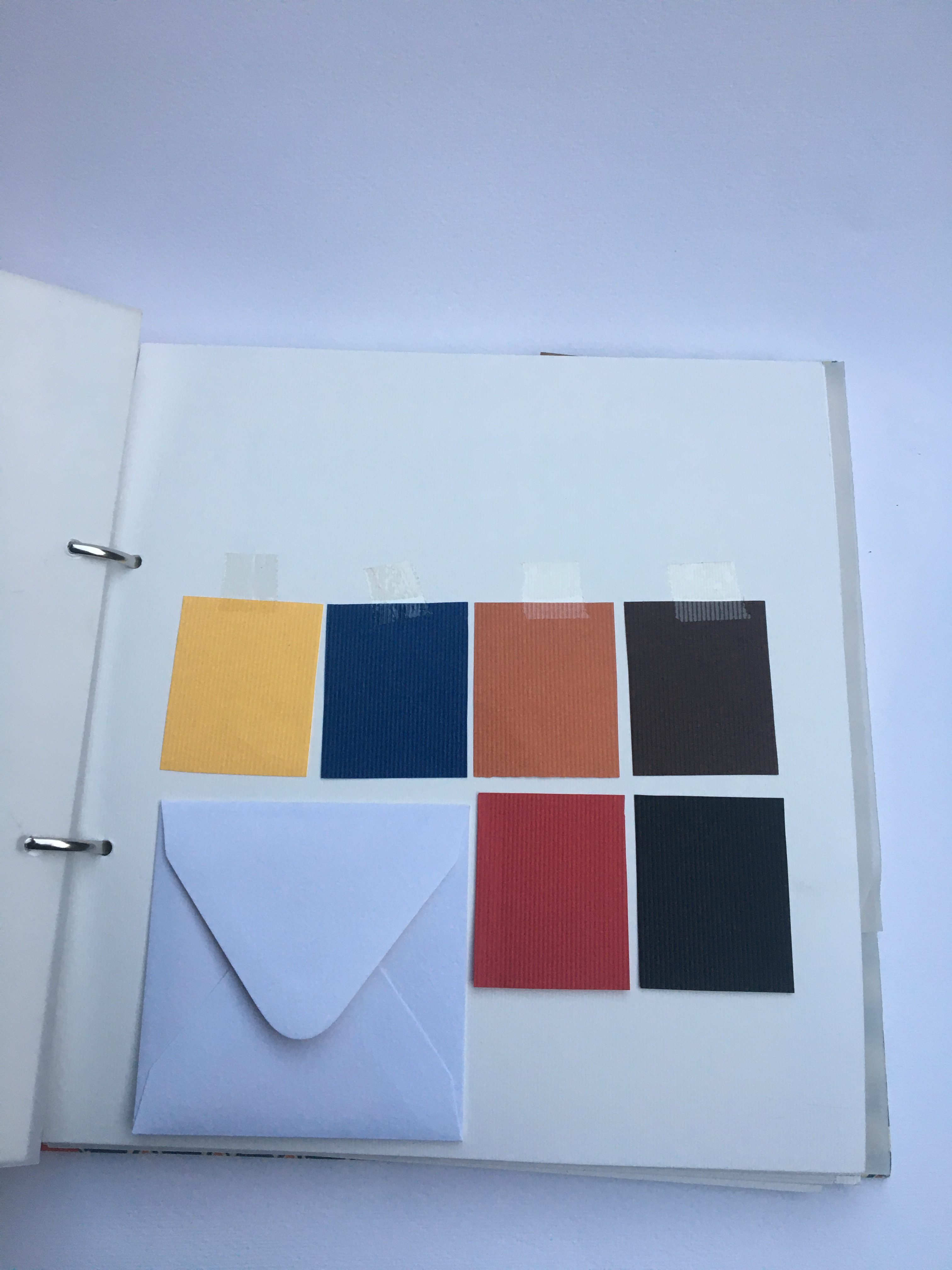 El suport on van enganxades les mostres dels materials són 25 cartolines blanques texturades amb ratlles d’uns 250 gr.