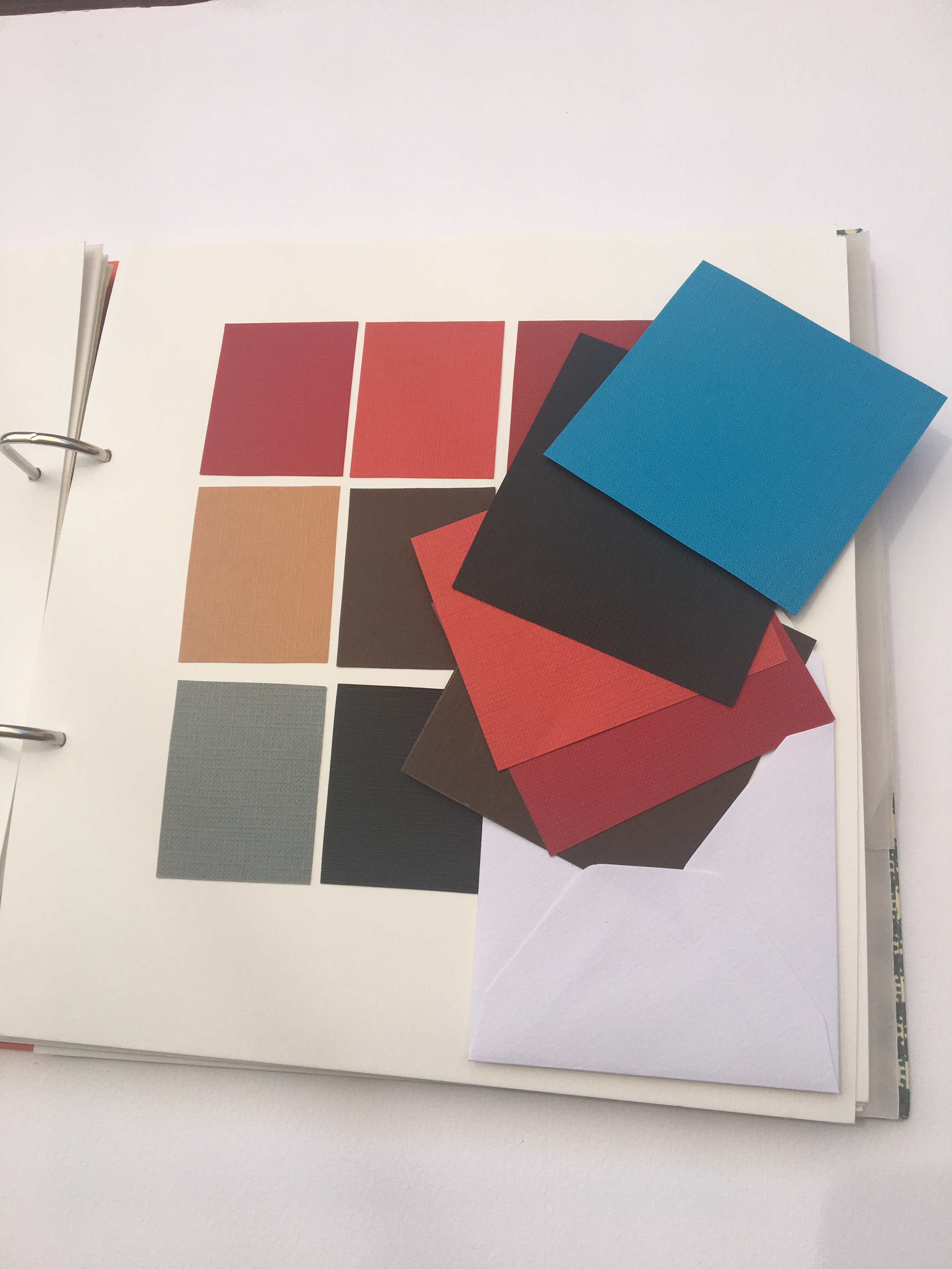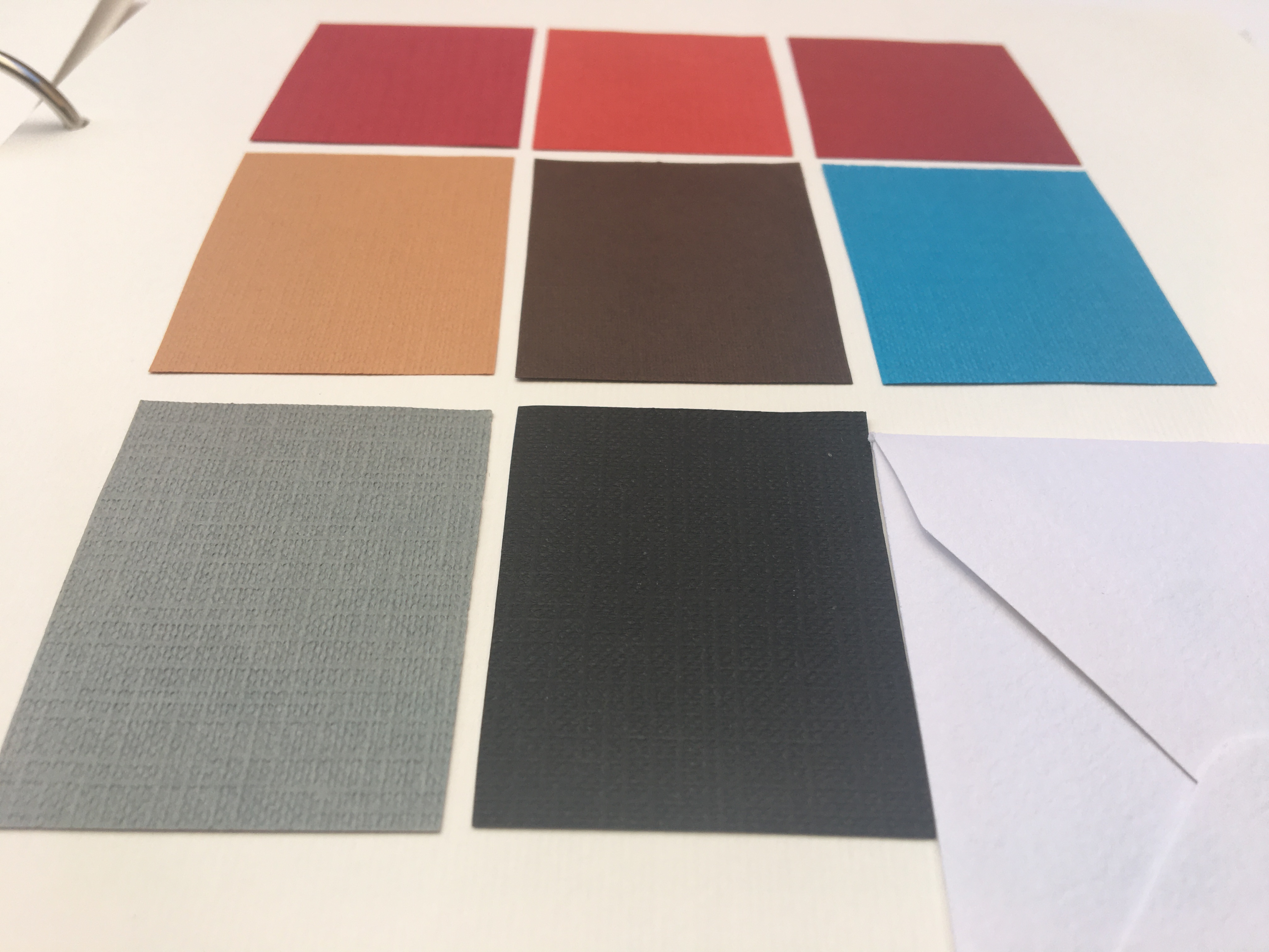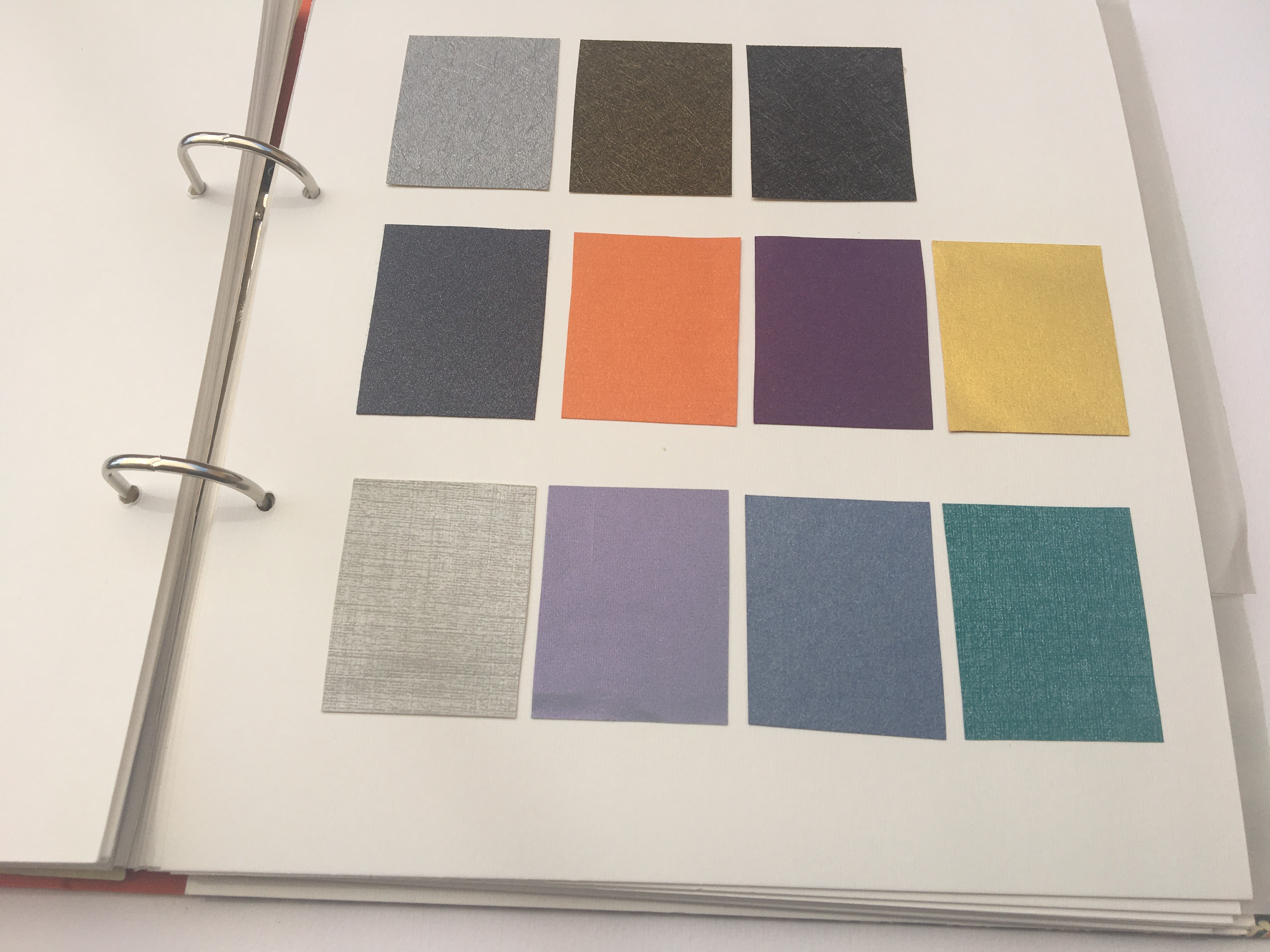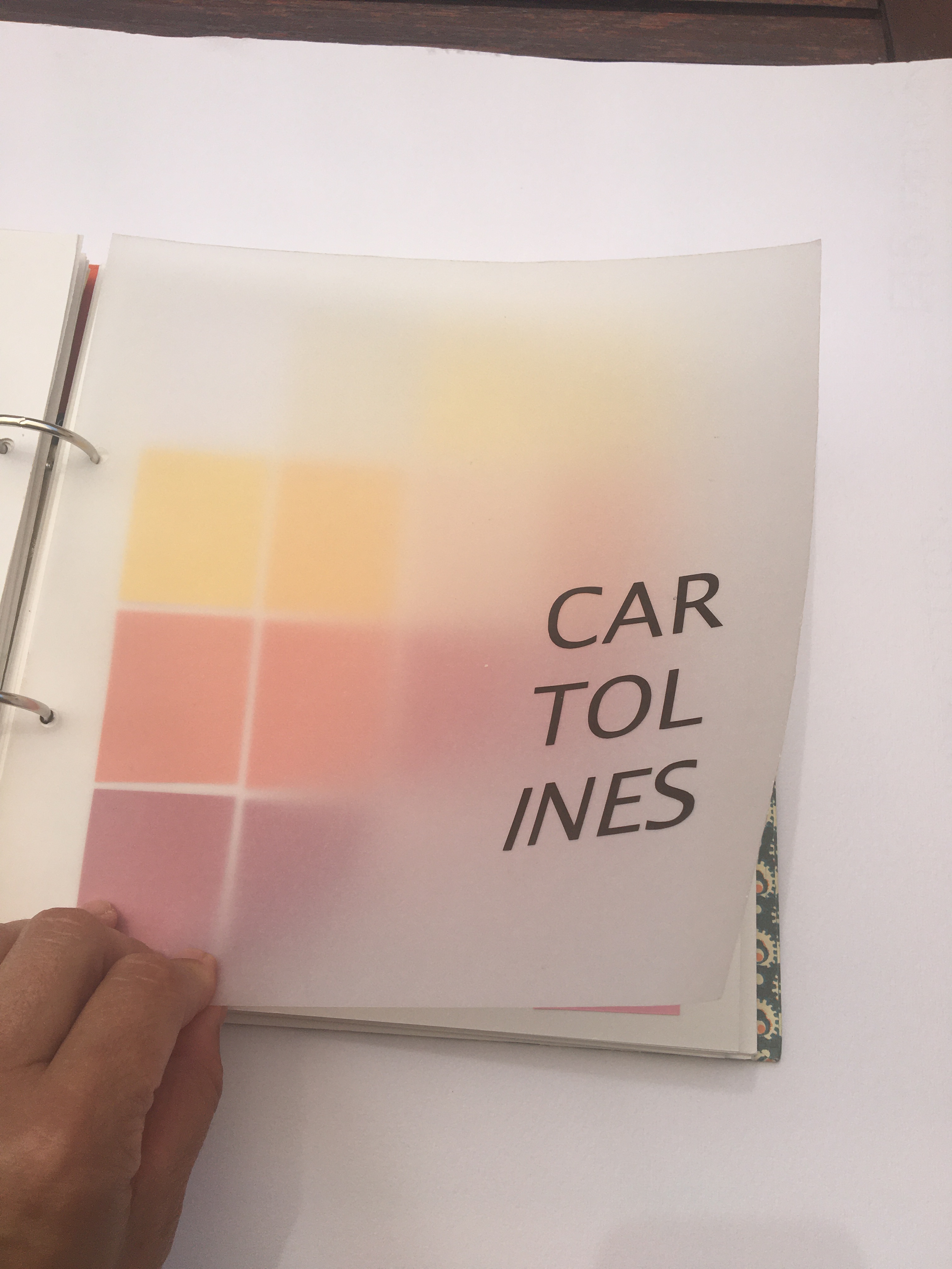 El suport on van enganxades les mostres dels materials són 25 cartolines blanques texturades amb ratlles d’uns 250 gr.