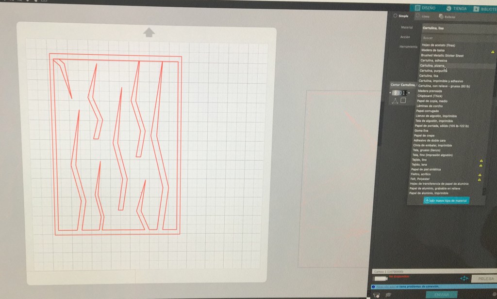 Amb la màquina de tall Silhouette he dissenyat una estructura que servirà de portada i contraportada. En el costat esquerre podeu veure tot el material que pot tallar, es necessiten diferents cutxilles segons el gruix.