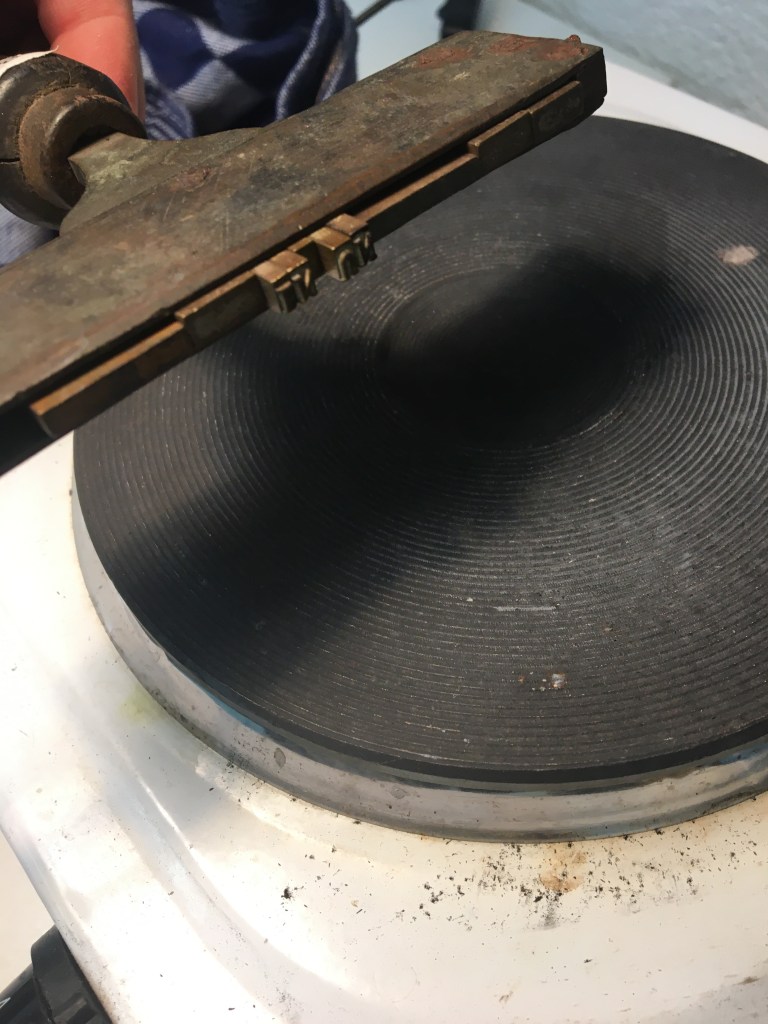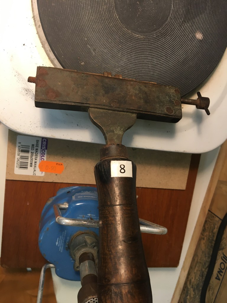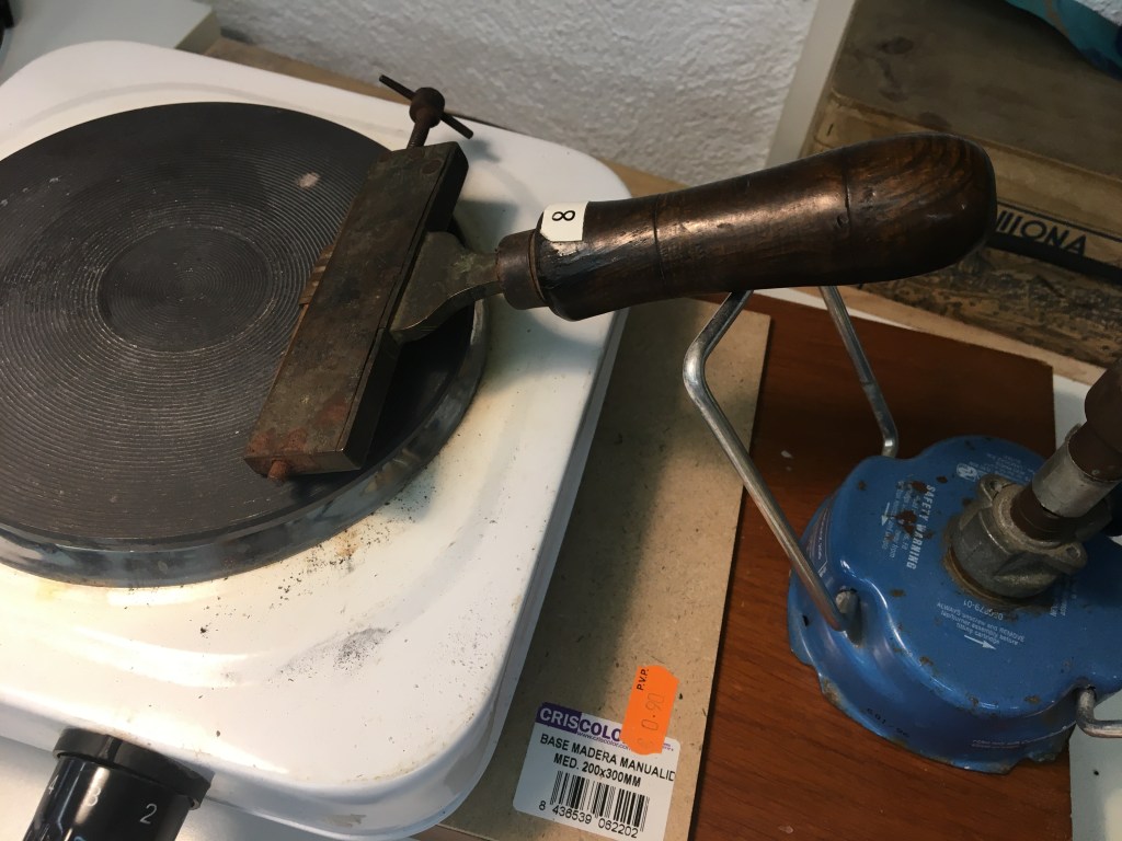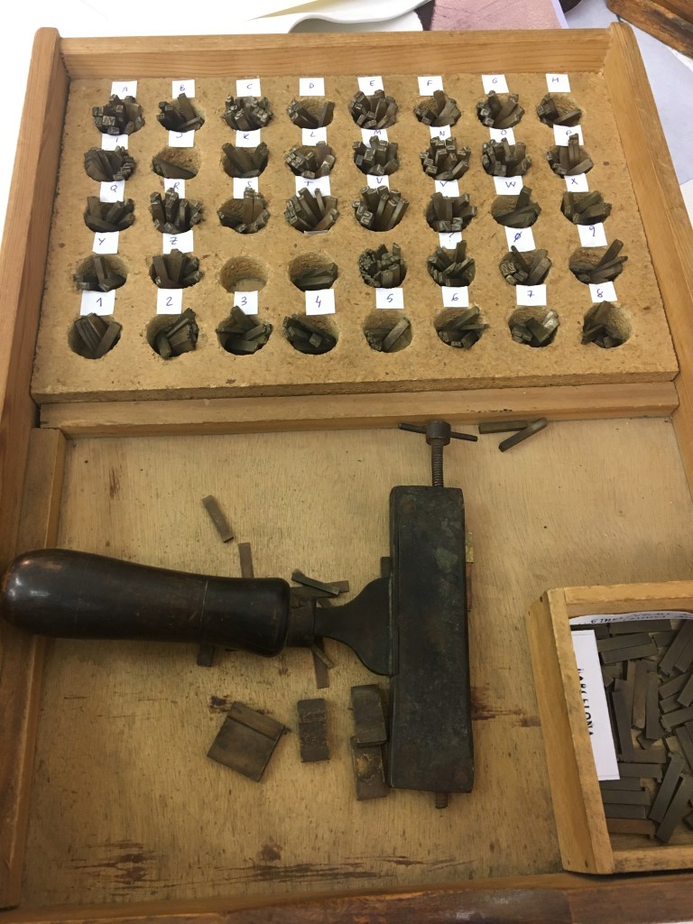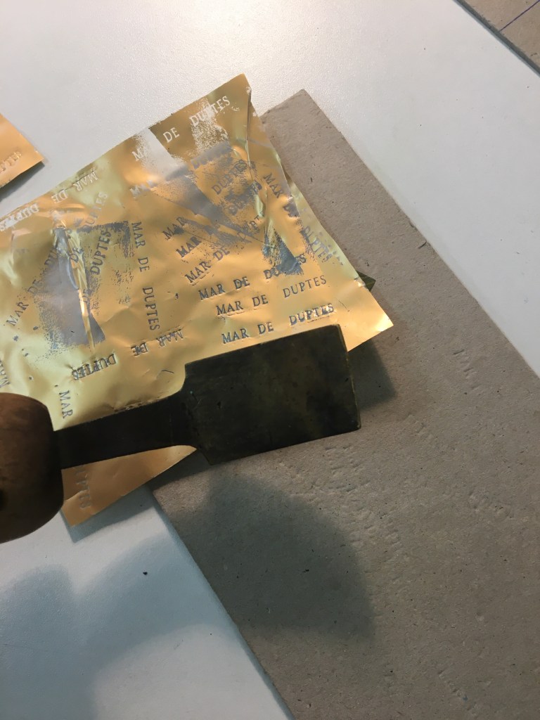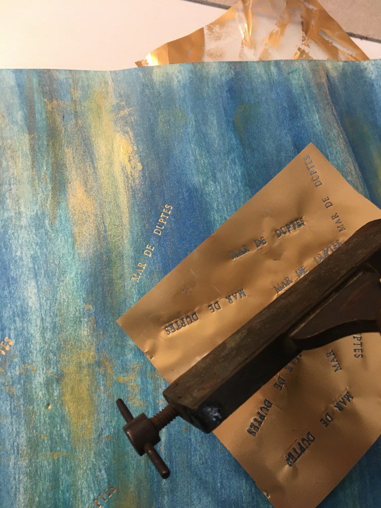 El daurat es fa amb ferros de bronze escalfats, una vegada tenen la temperatura adequada i fent pressió sobre una pel·lícula daurada (en aquest cas) obtenim com a resultat un gravat. Hi ha uns componedors on es posa el text.