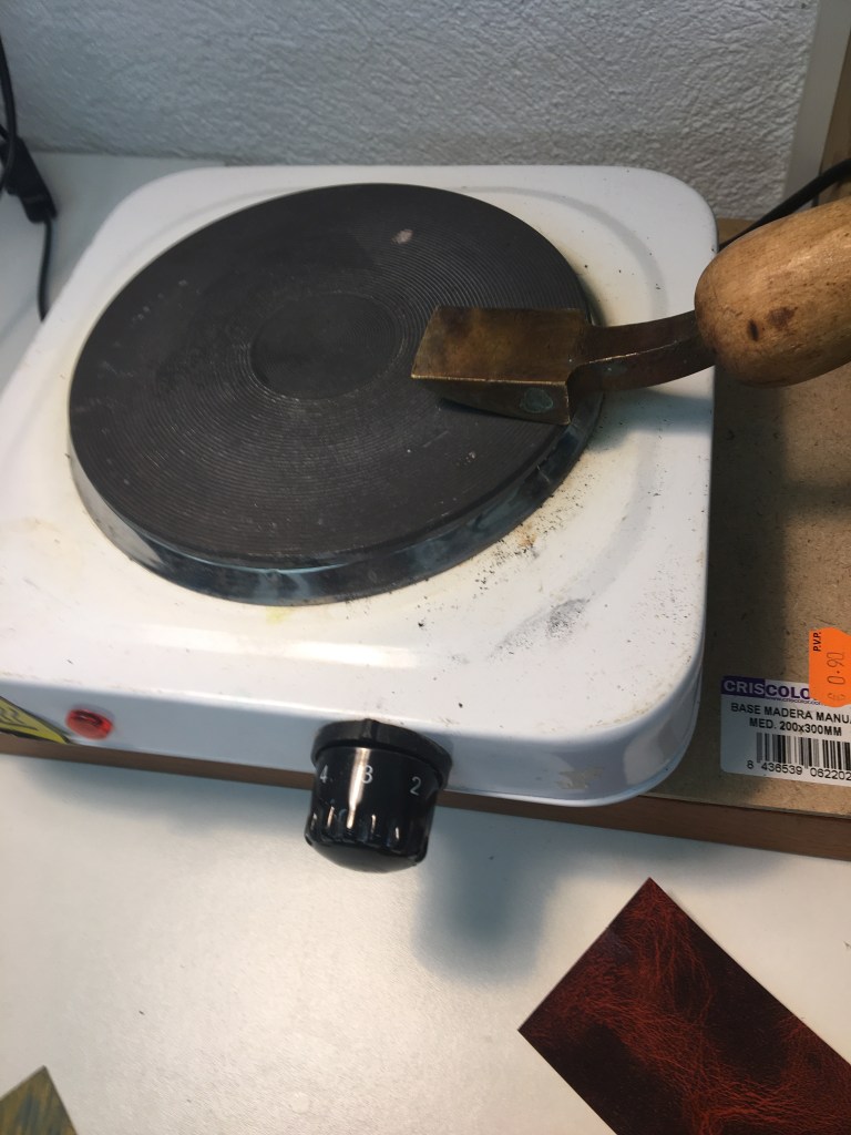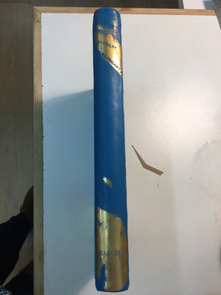 Aquí veieu el procediment del muntatge d’aquest llibre en pell, el daurat l’he fet al taller la Xifla, on l’Enar ens va guiant per acabar fent una bona feina.
