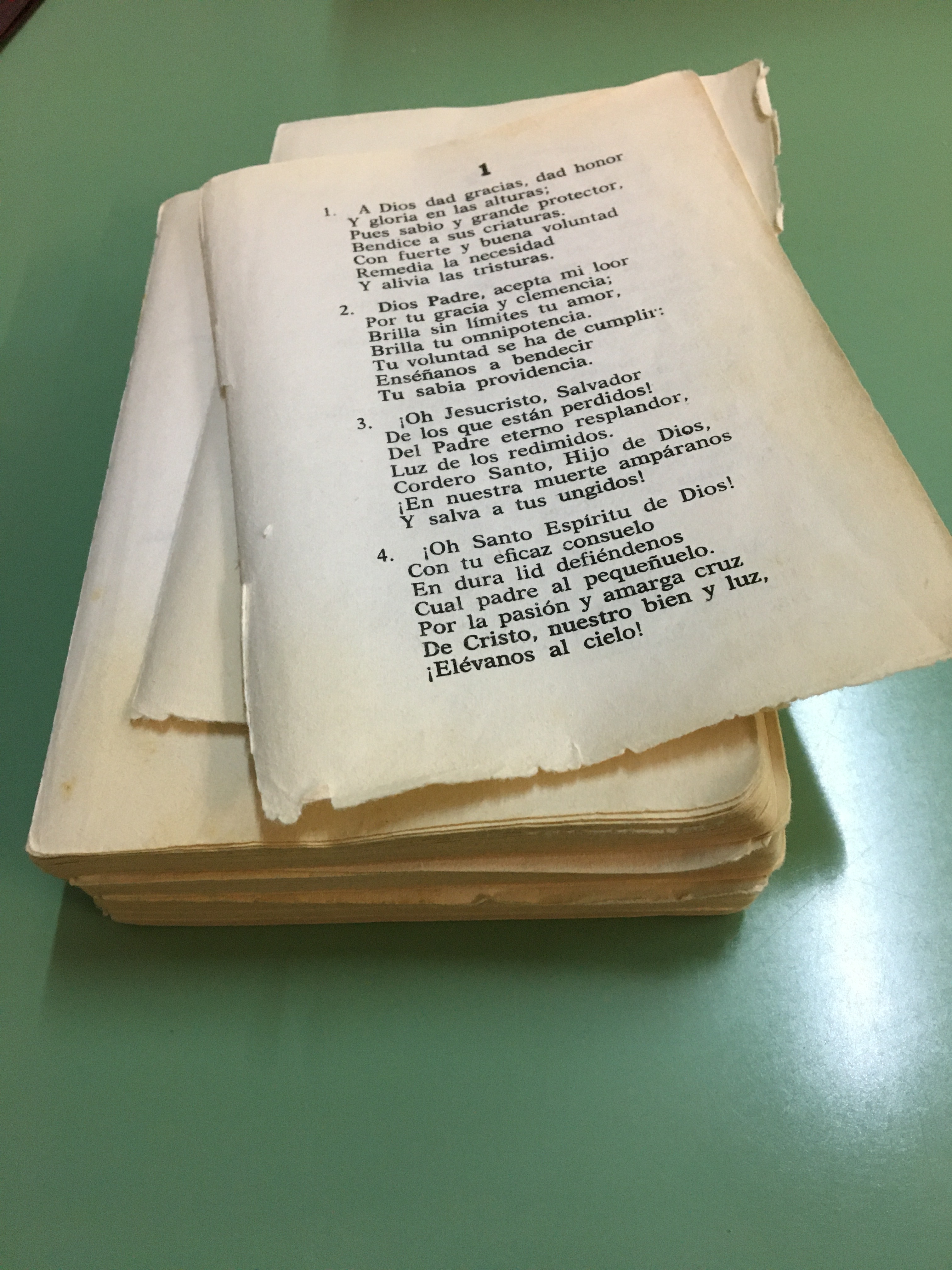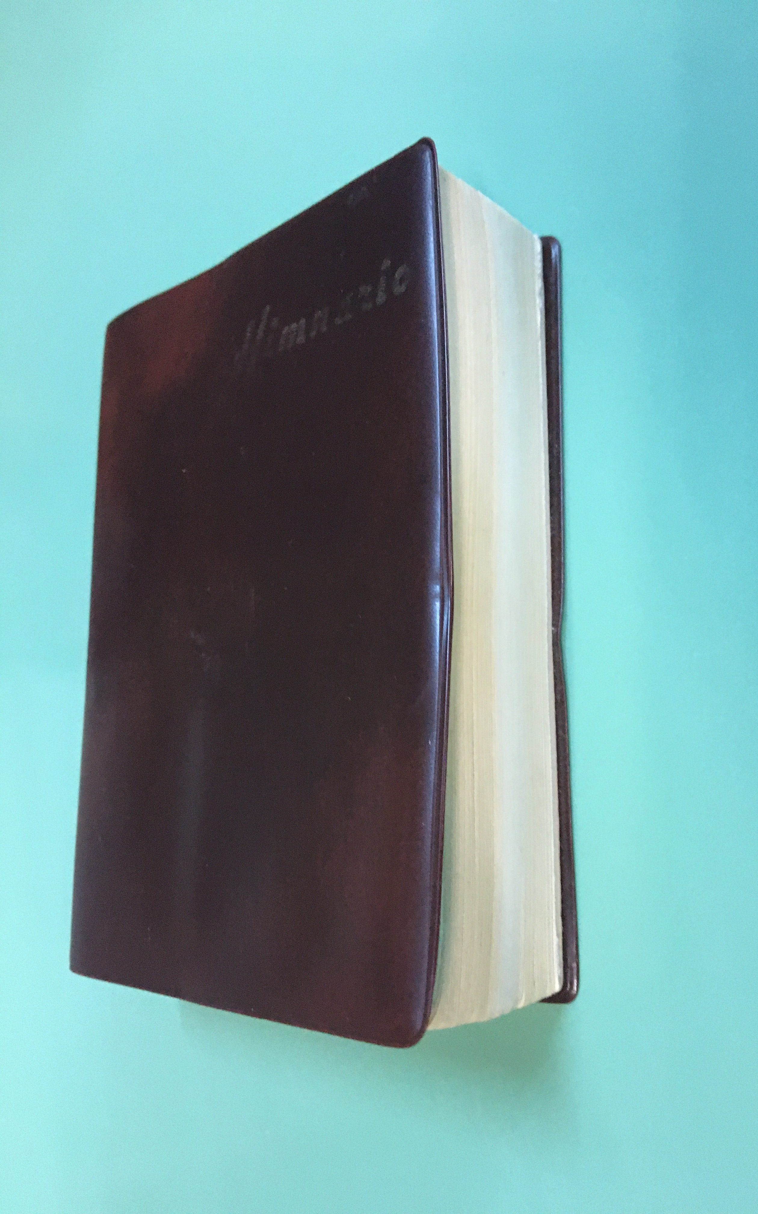 Dos himnaris enquadernats a l’americana, aquests tipus d’enquadernacions són molt fràgils, ja que no porten un cosit amb fil. Amb el pas del temps i l’ús s’han desenganxat tots els fulls, així que els haig de restaurar.
