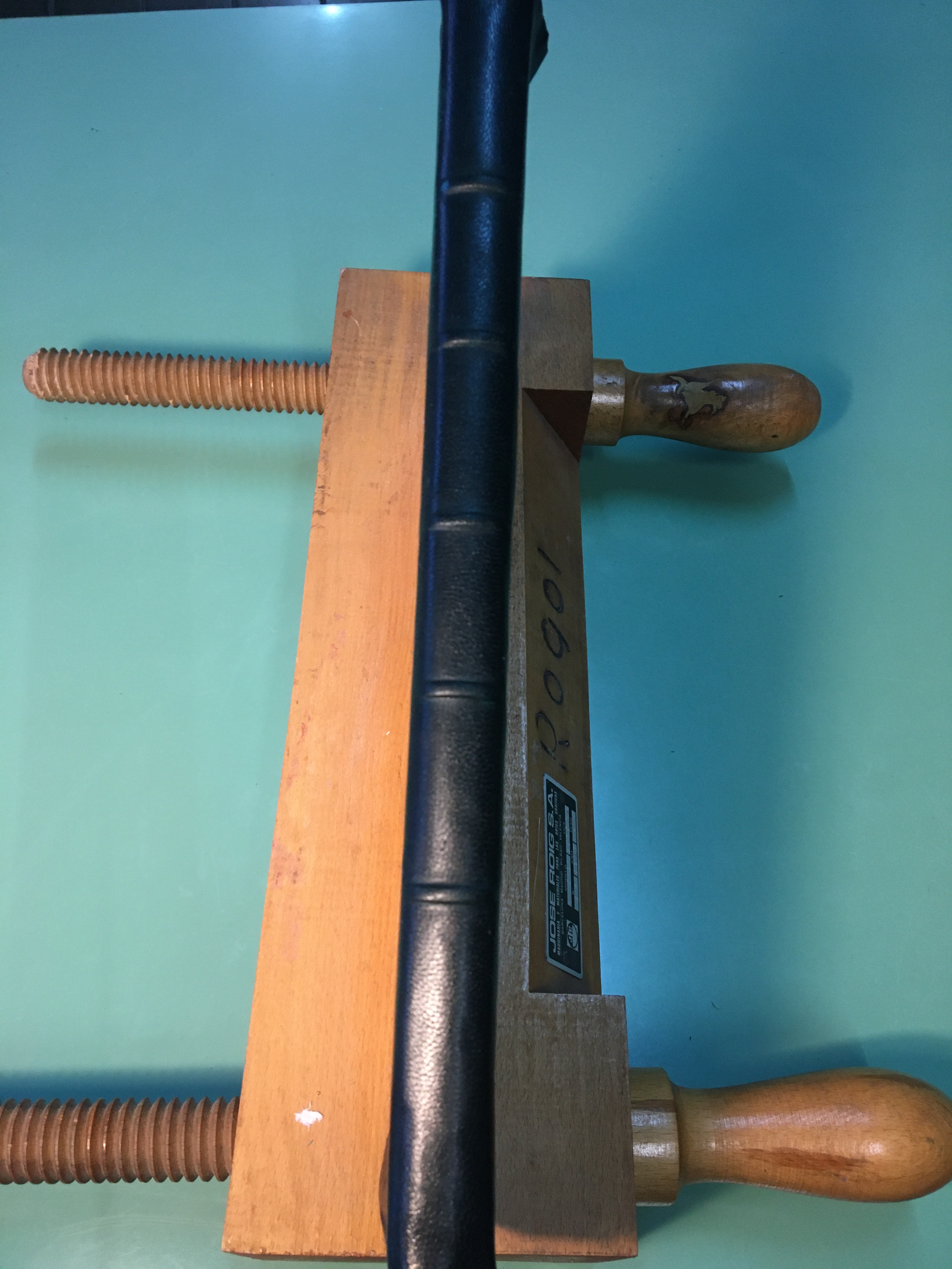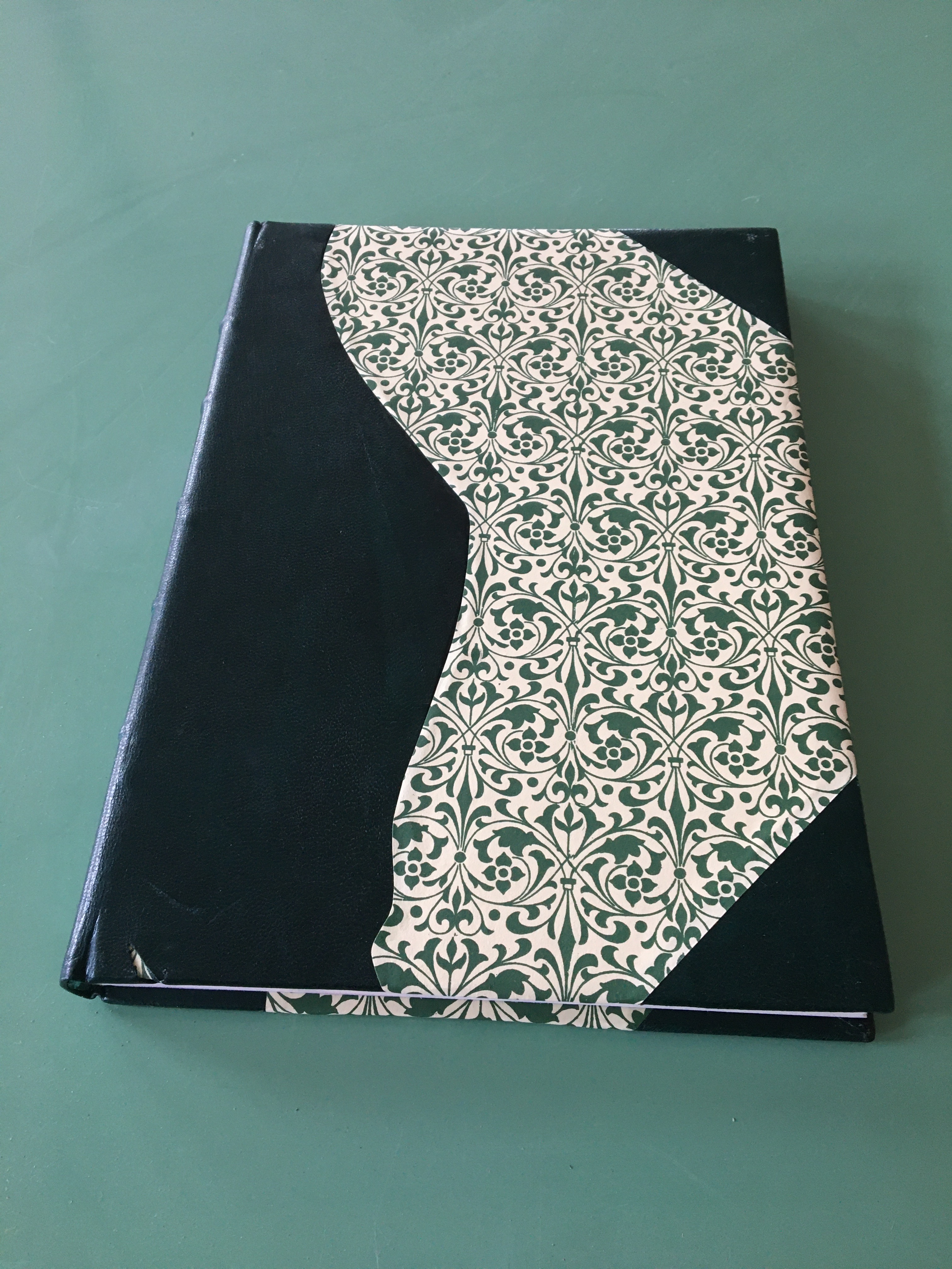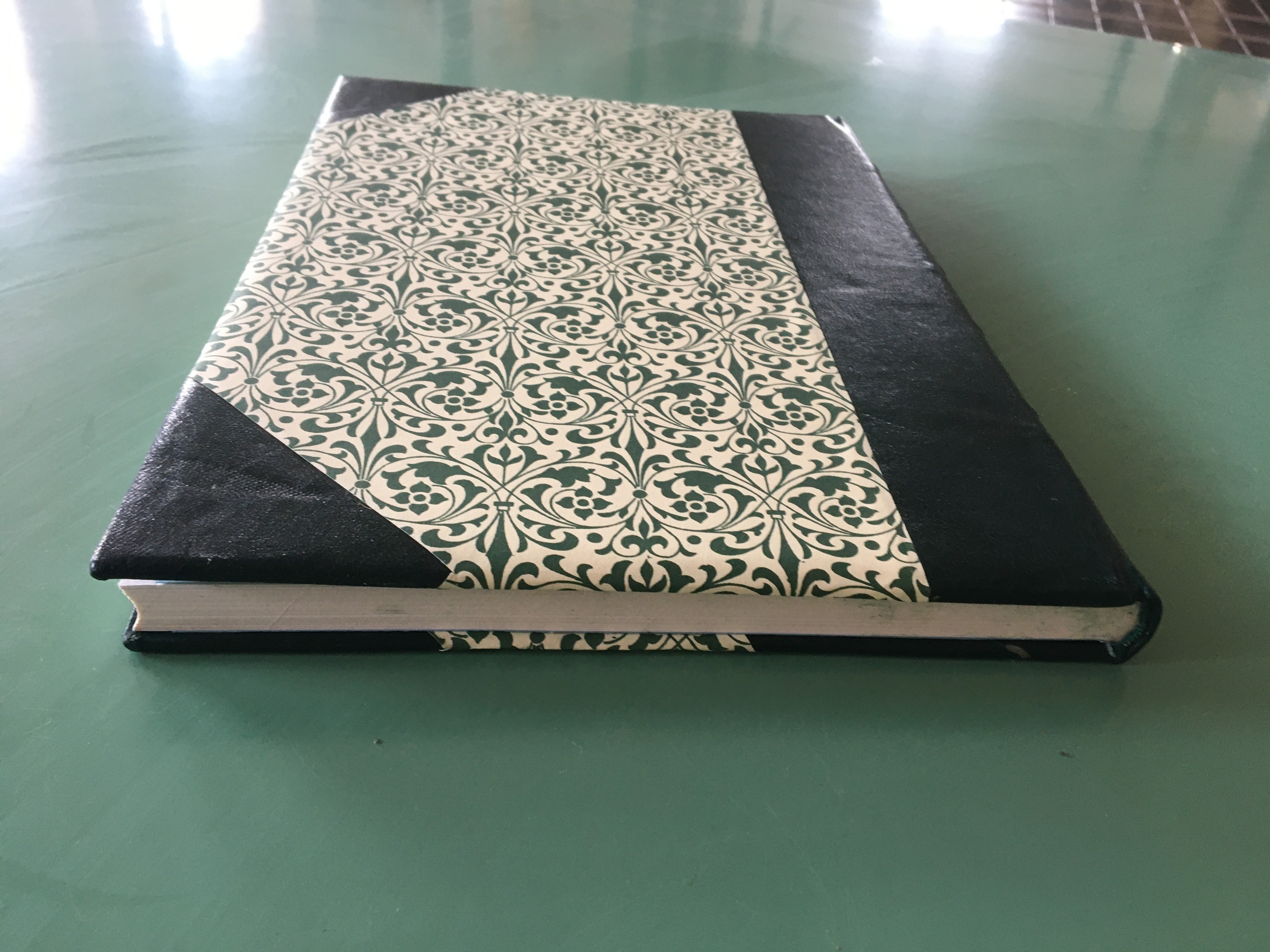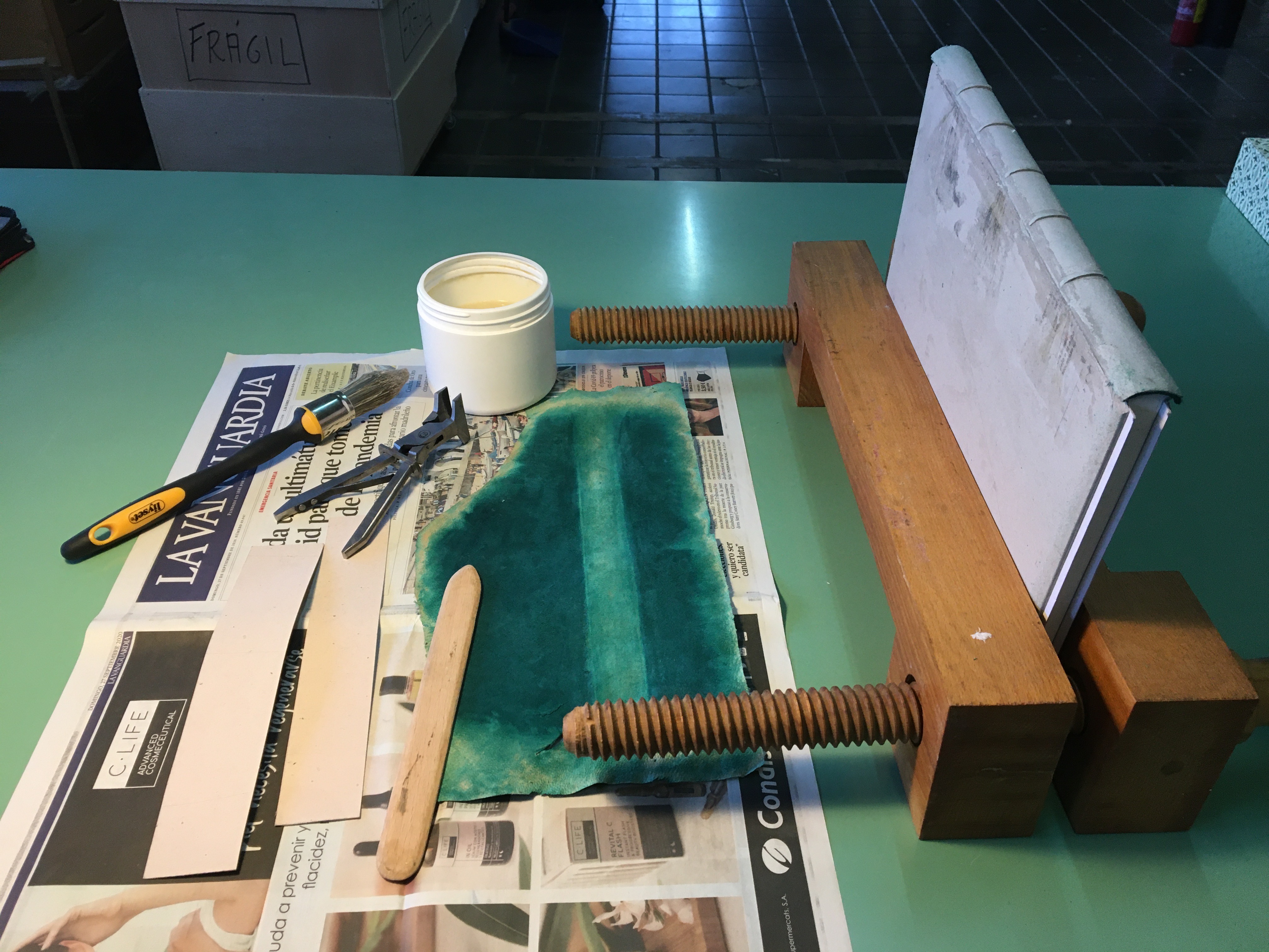 Realització d’una enquadernació amb tapa muntada i mitja pell a l’holandesa. Aquest procés és molt elaborat, molts passos i molta espera entre un i l’altre, un repte per mi que soc tan impacient, m’està agradant molt realitzar-lo amb un resultat bastant acceptable, a veure què dirà la destinatària!