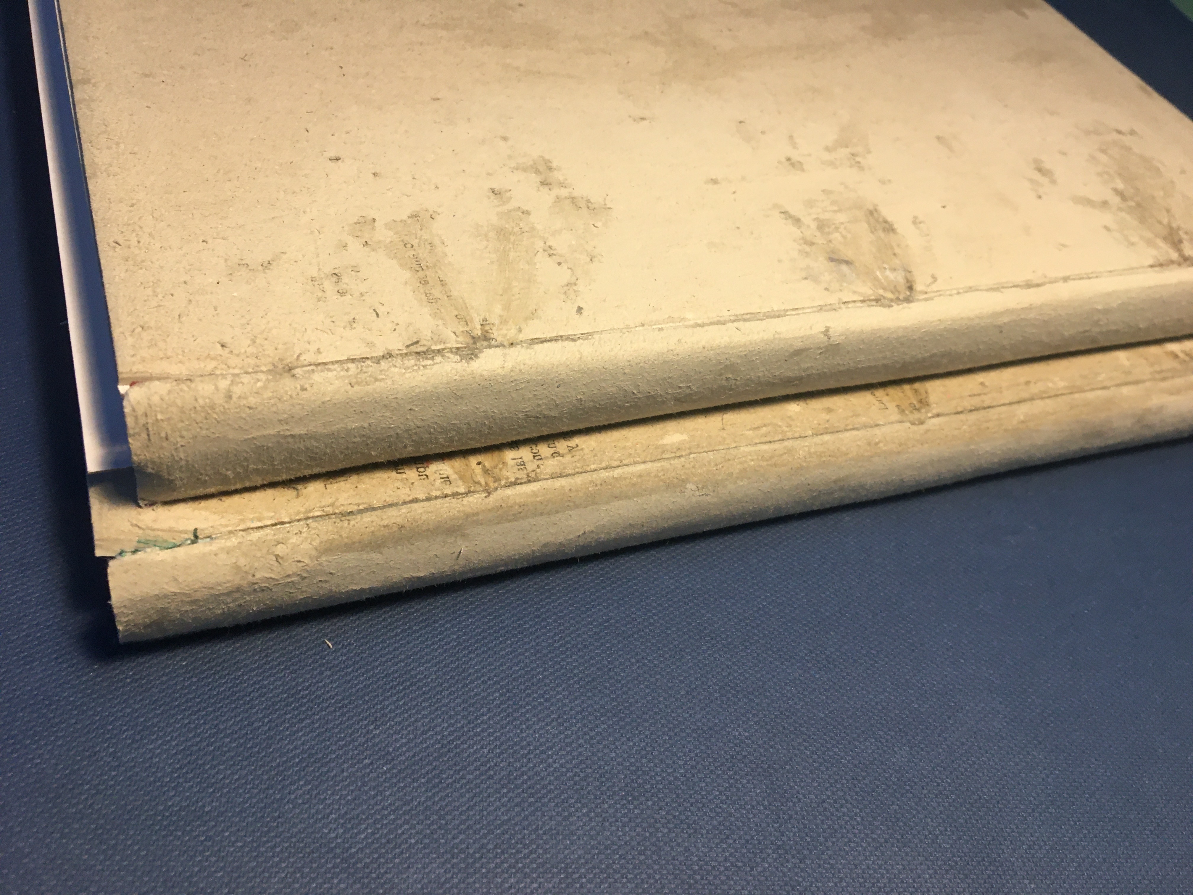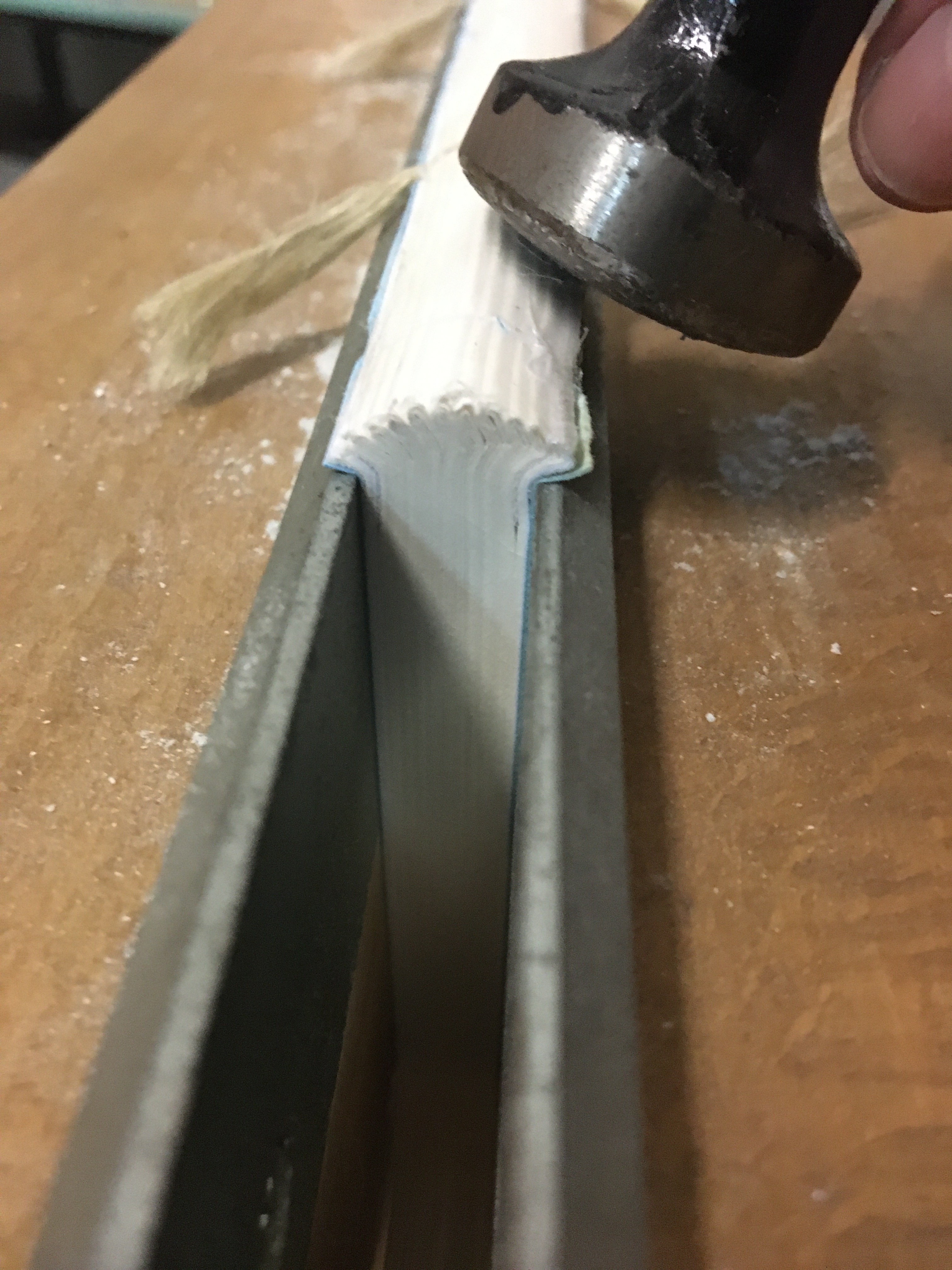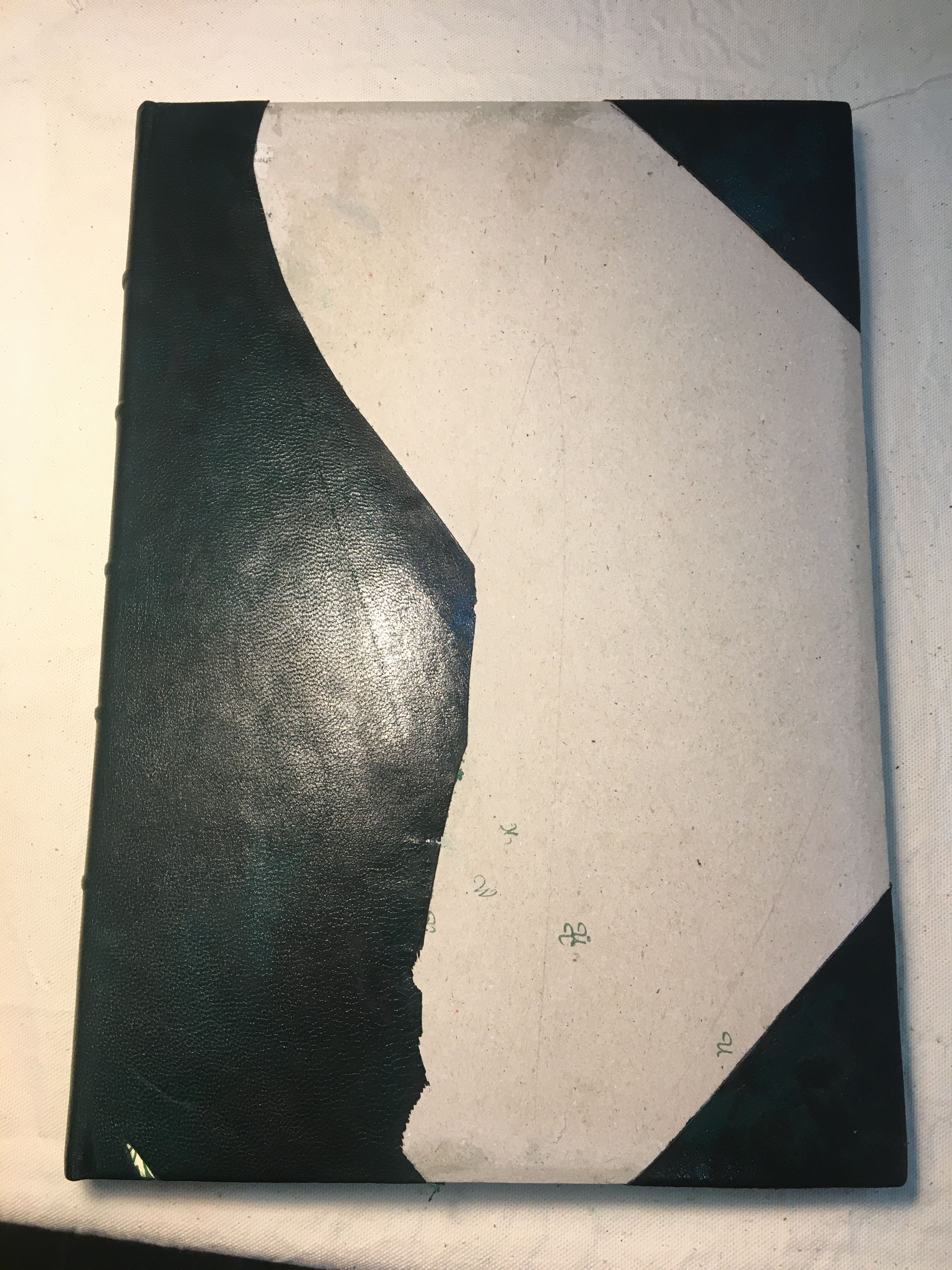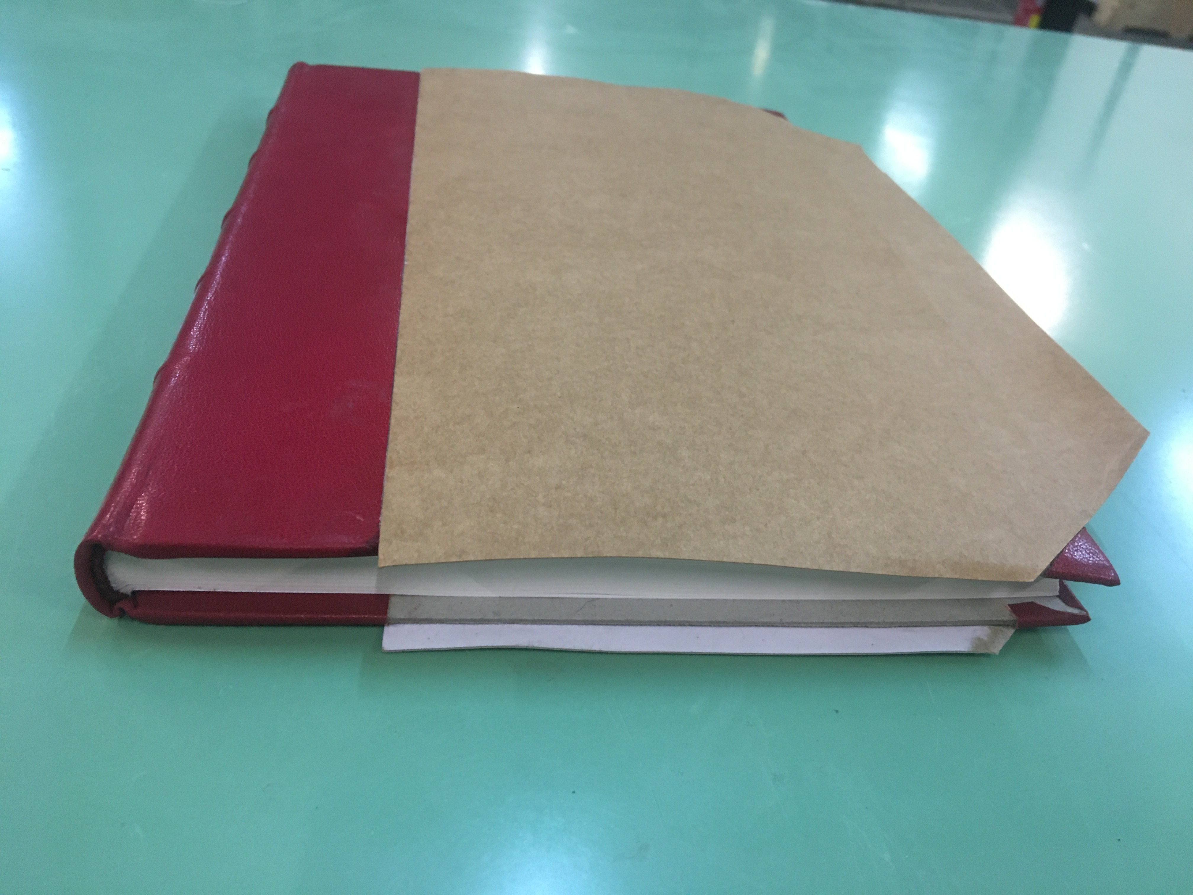 Realització d’una enquadernació amb tapa muntada i mitja pell a l’holandesa. Aquest procés és molt elaborat, molts passos i molta espera entre un i l’altre, un repte per mi que soc tan impacient, m’està agradant molt realitzar-lo amb un resultat bastant acceptable, a veure què dirà la destinatària!