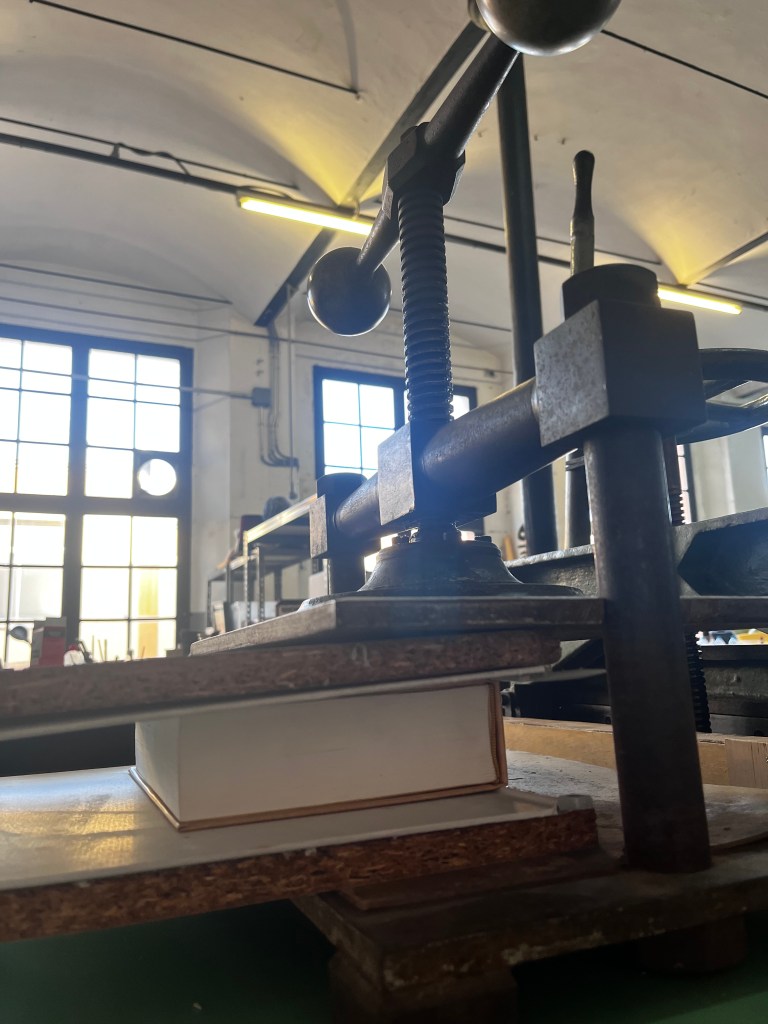 Preparación de la tripa con cabezada, percalina y forro, seguidamente preparo las tapas, pongo un alza en la parte posterior de las tapas, para que no haga un escalón cuando enganche la guarda al cartón y lo dejo prensar 24 horas.
