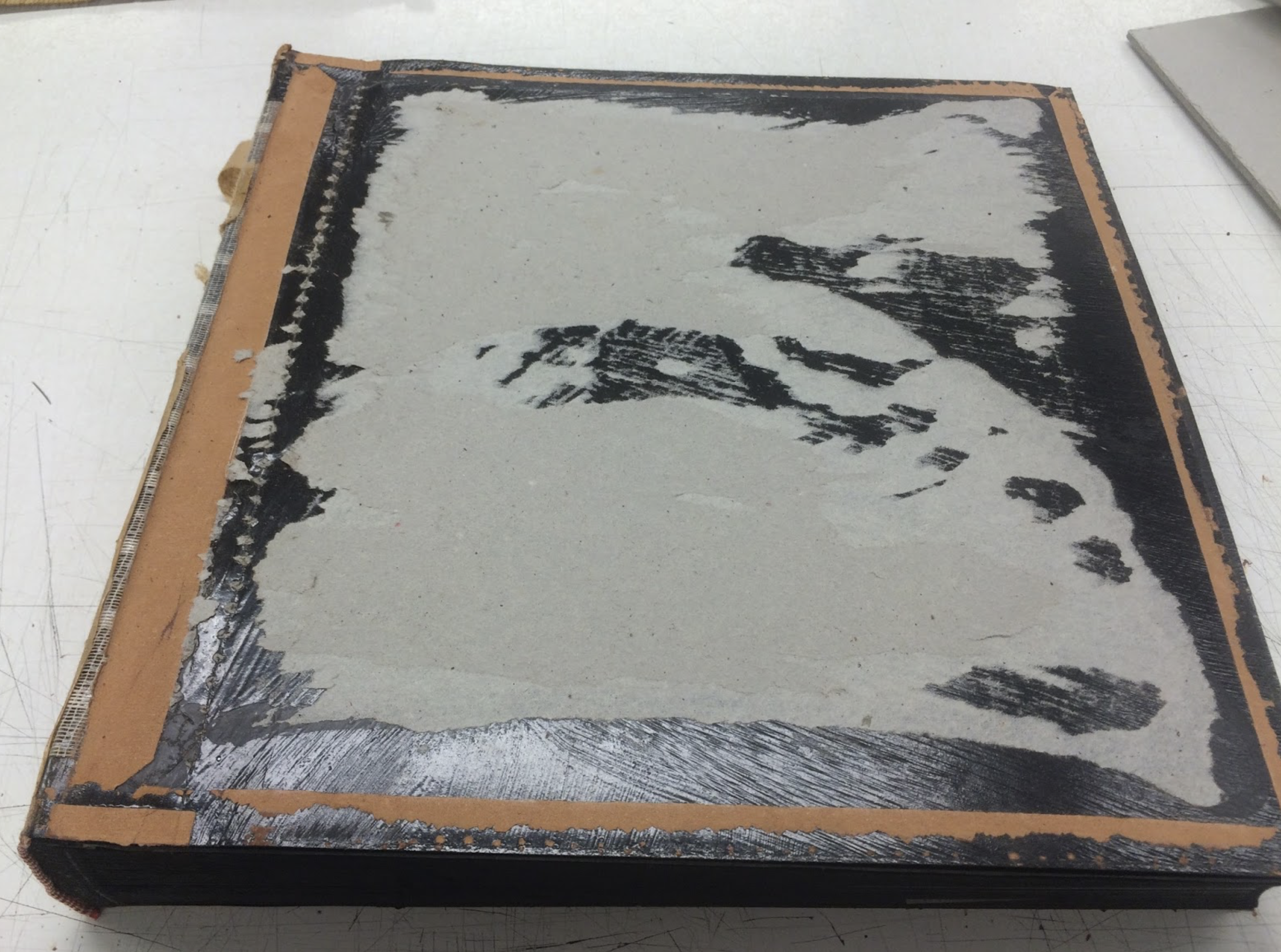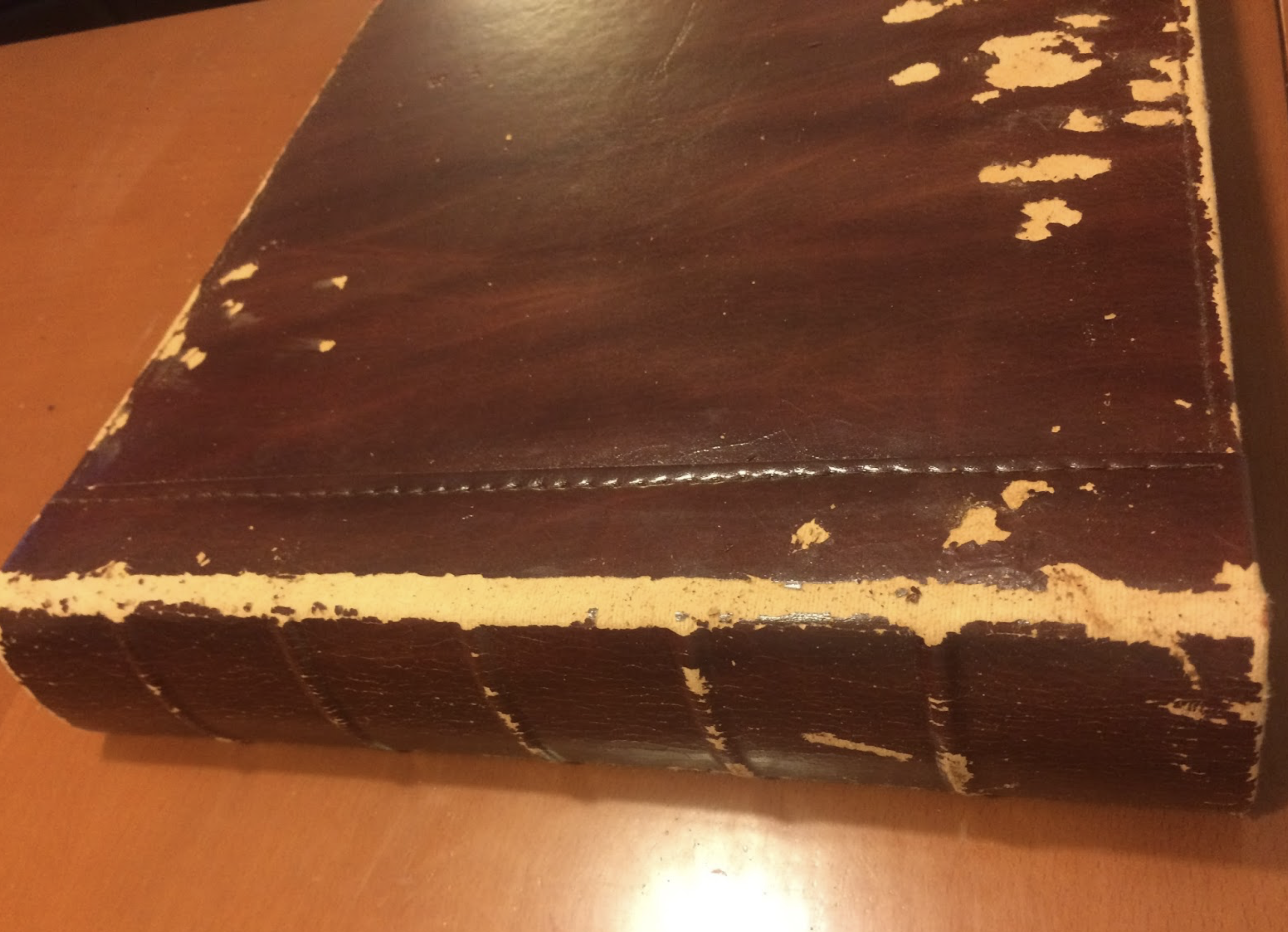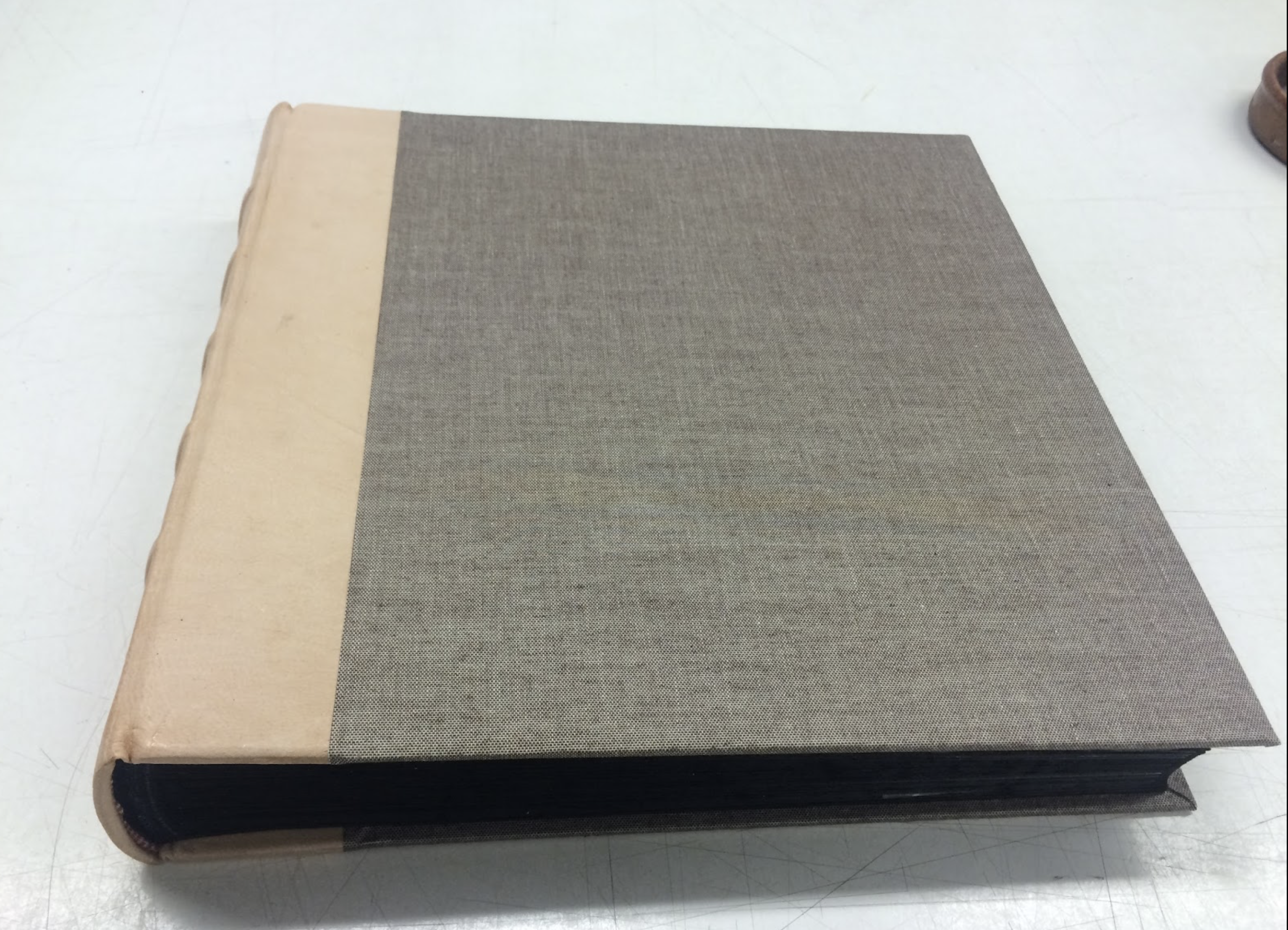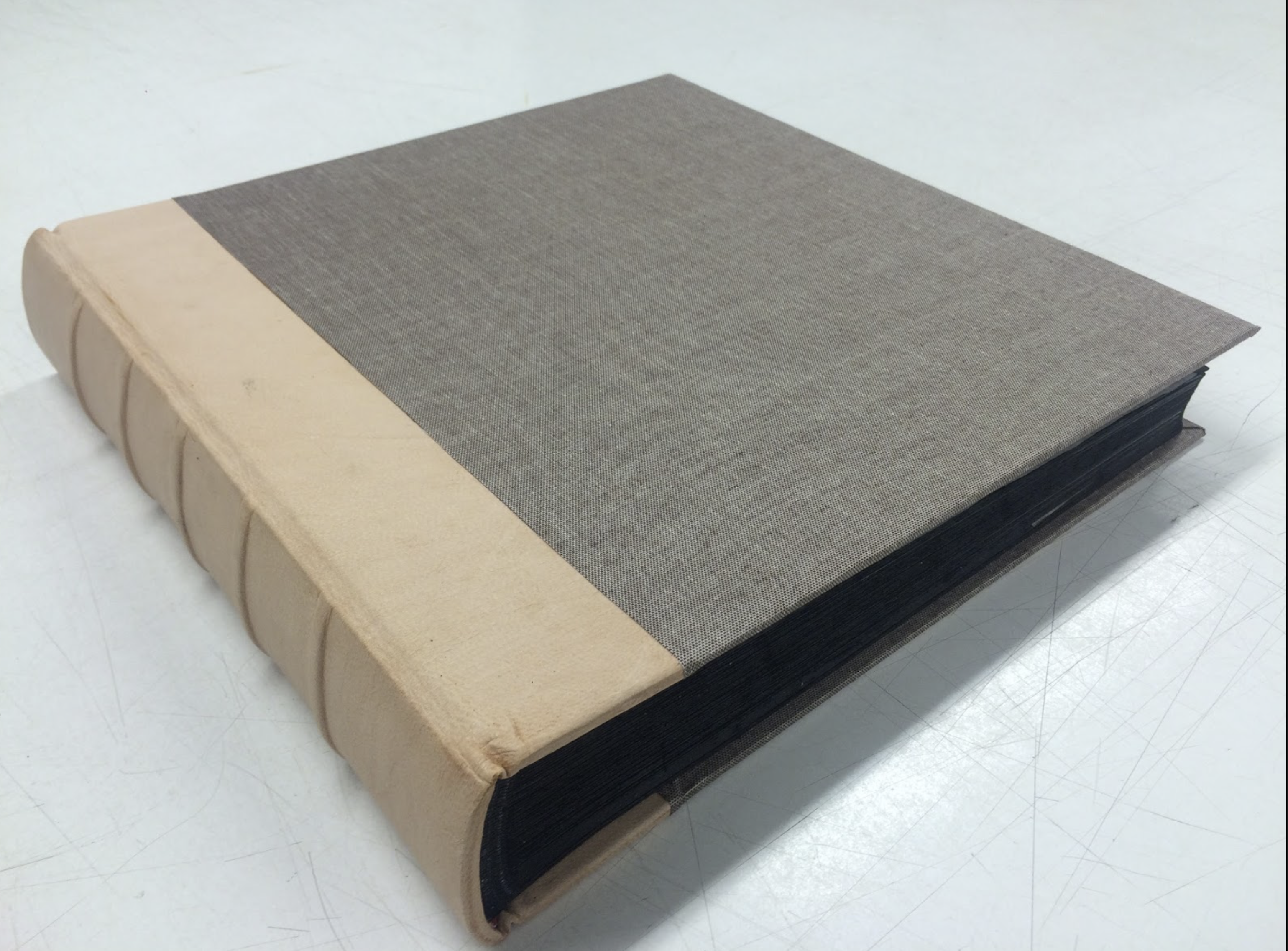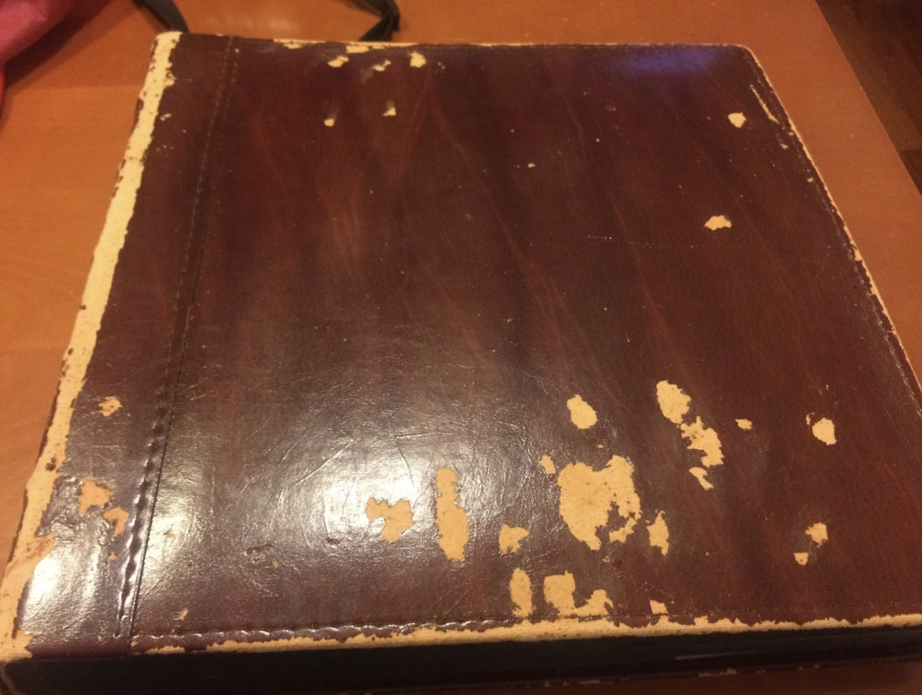El material de las tapas de este álbum de fotos se ha ido desgastando con los años, así que Pepi me pidió que le cambiara las tapas. He reemplazado los cartones y he puesto un lomo con media piel de badana y el resto con tela de color marrón.
