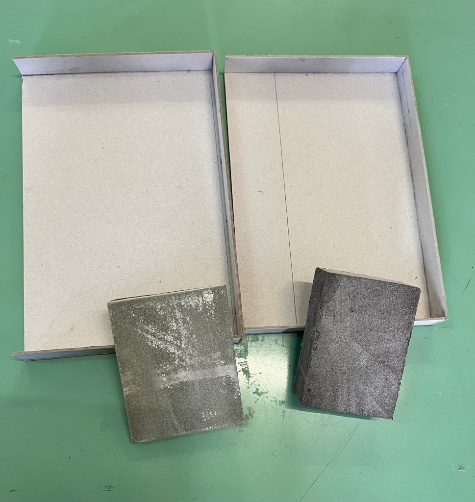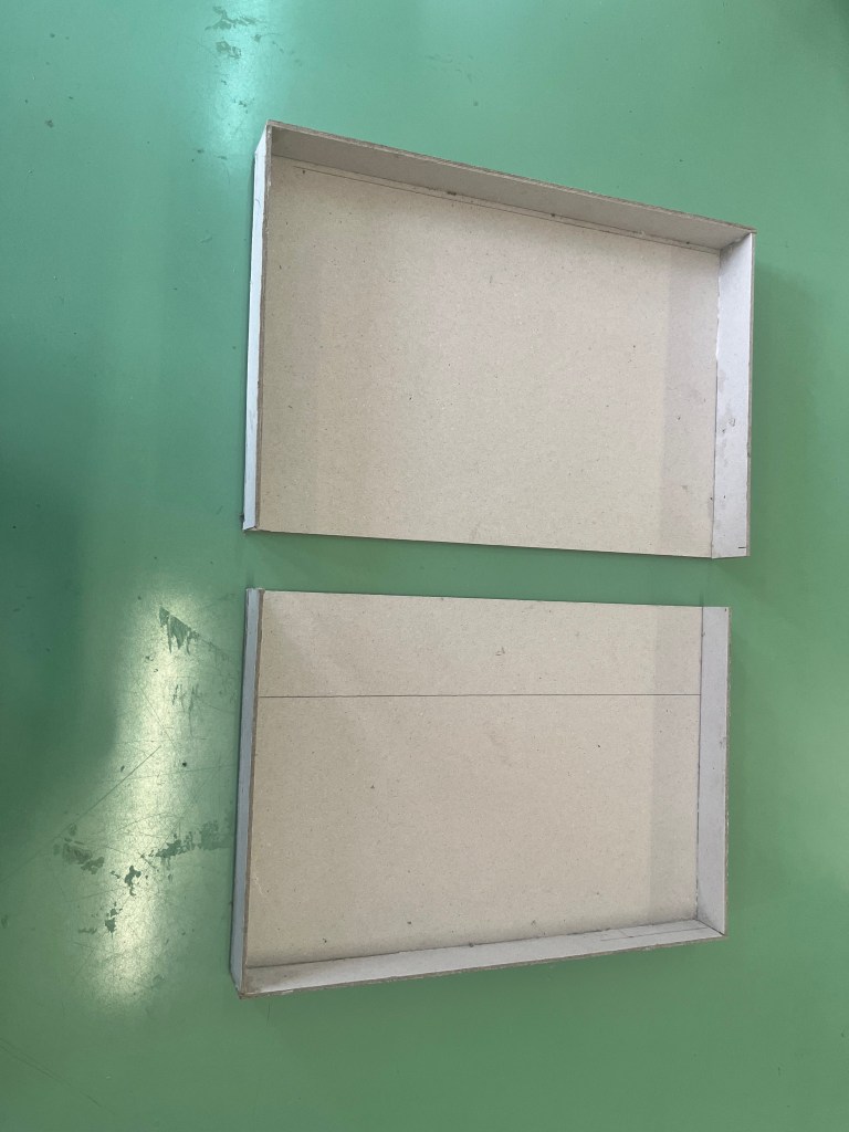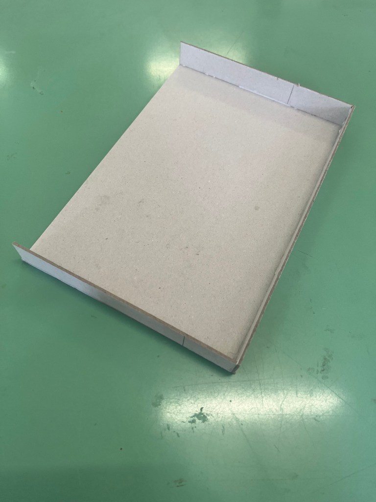 - Estructura en cartón con cola densa y refuerzo de esquinas con papel Kraft engomado.