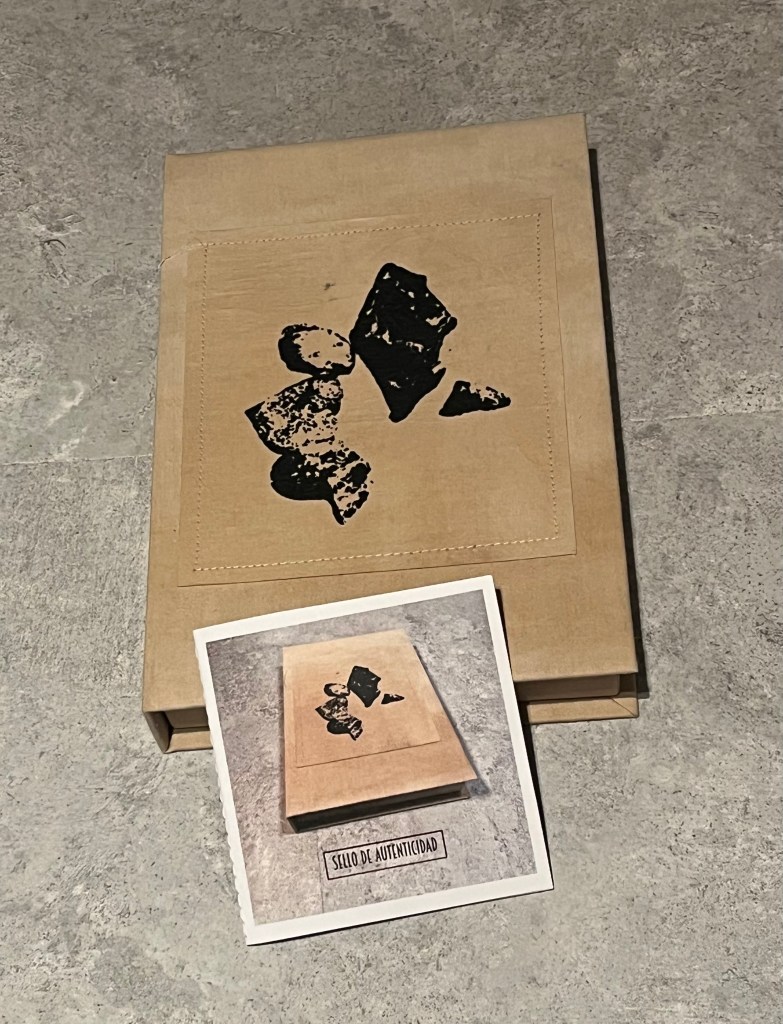 El resultado es un majestuoso Estuche Doble Bandeja que, al abrirse, revela una preciosa carpeta negra fusionada con la tela teñida y la imagen serigrafiada en la portada.